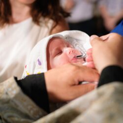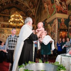 Ziua botezului este plină de emoții și zâmbete cu toată familia adunată în jurul copilului.